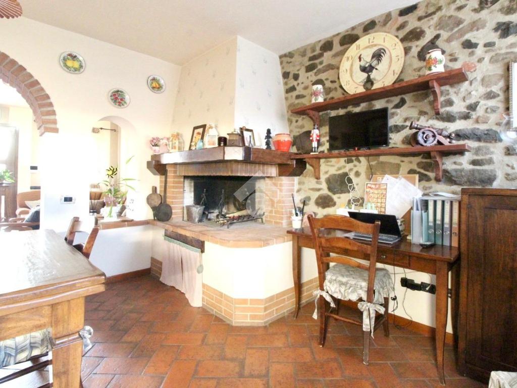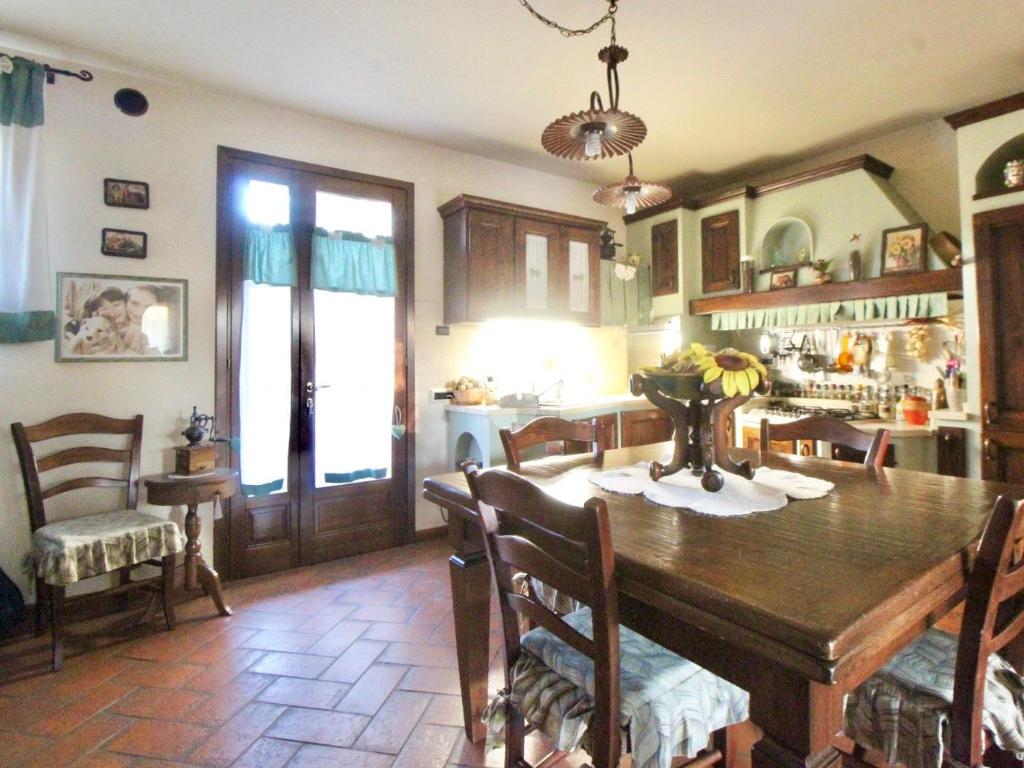 La cucina è abitabile, con camino in muratura, risultando uno spazio funzionale e conviviale.