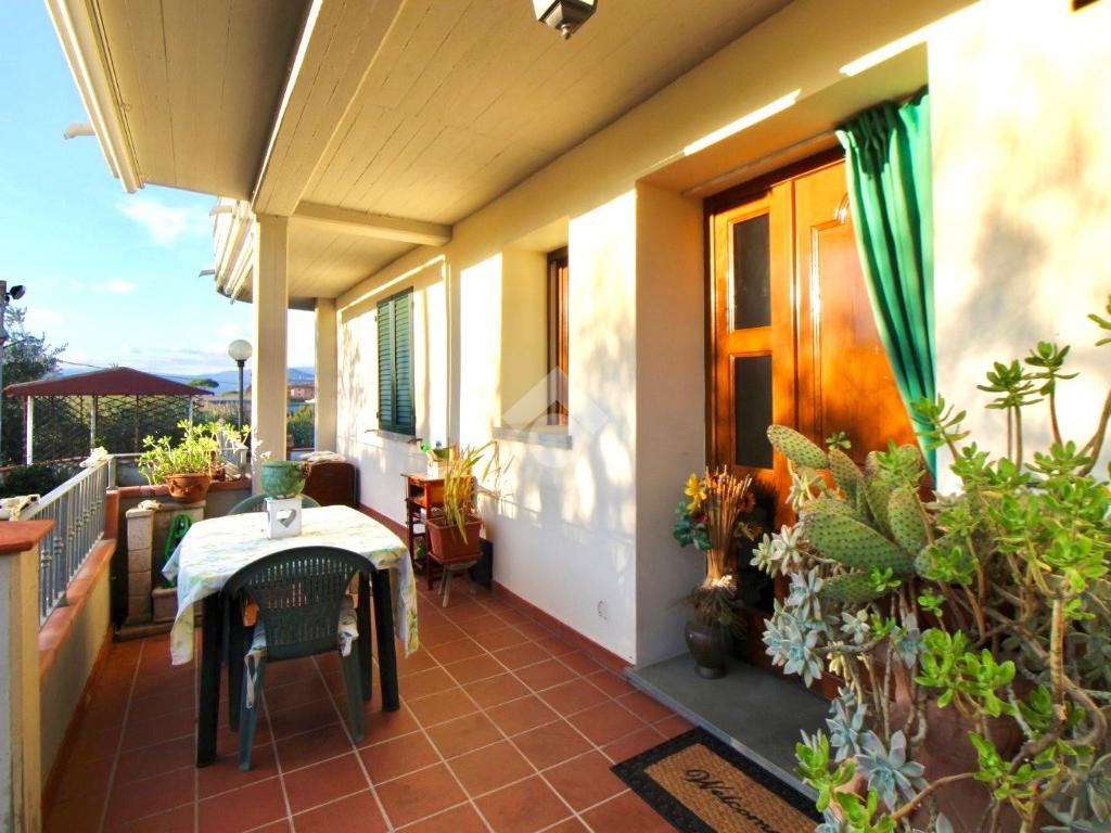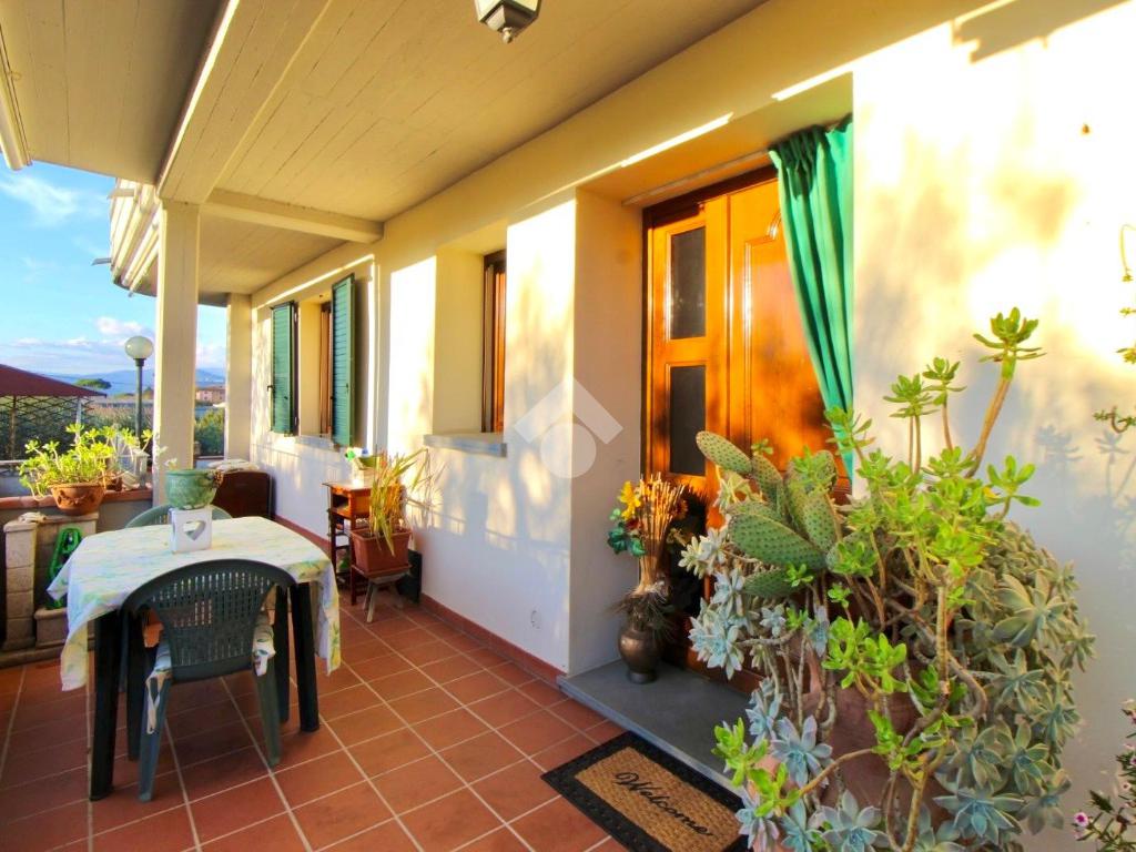 L'ingresso all'abitazione avviene tramite una terrazza privata di c. ca 20 mq, pavimentata in cotto.