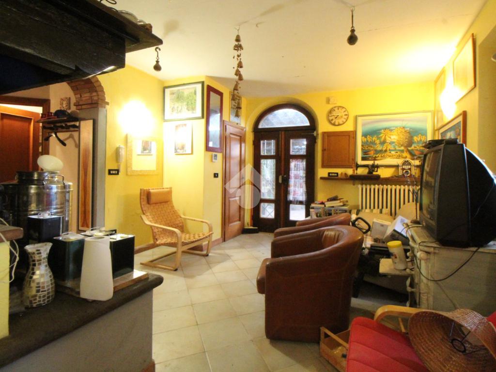 La zona giorno è composta da un' ampio soggiorno luminoso con camino e forno a legna, separato dalla cucina abitabile, a completare l' ambiente un bagno di servizio.